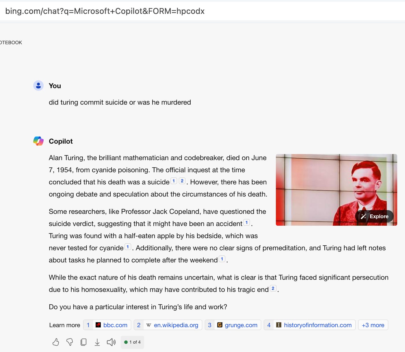 I’ve asked a polar (yes/no) question, and the best answer is probably, ‘I don’t know.’ Some claim he was murdered, some suggest an accident and some say suicide. In the answer above, the murder response is missing. The LLM trouble, that is surfaced here, is that copilot mentions it sometimes, but it didn’t this time. That’s not deterministic, and often not good if some corporate environment demands precision in response.